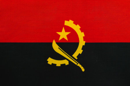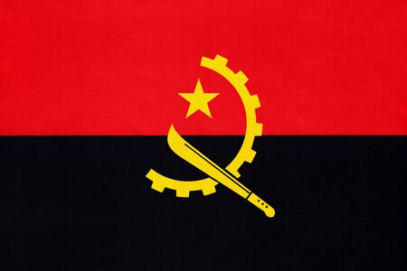 Angola national fabric flag textile background. Symbol of international world African country. State official sign.