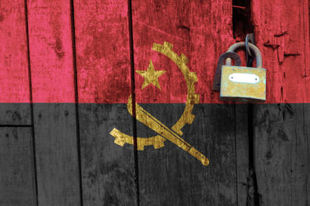 Angola flag is on texture. Template. Coronavirus pandemic. Countries may be closed. Locks.
