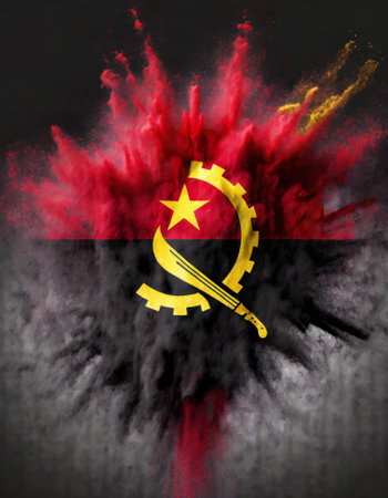 Angola colorful flag holi paint powder explosion on isolated background, generated by AI. High quality photo