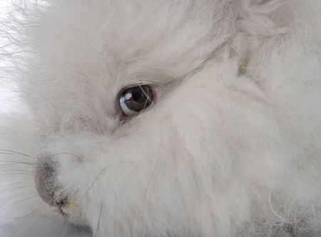 A furry English Angora rabbit with long hair on its ears