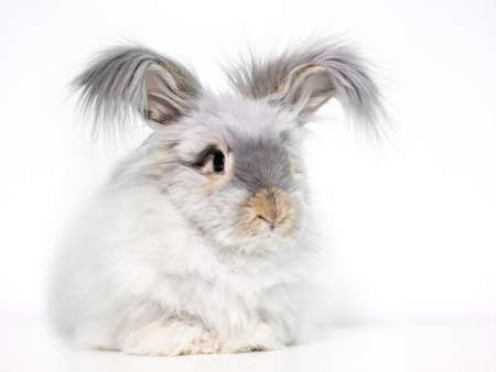 English Angora in front of white background