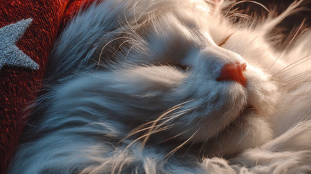 A charming white cat dressed in a festive red and white sweater, capturing the spirit of winter and holiday joy in a cozy indoor atmosphere. Perfect for seasonal themes!