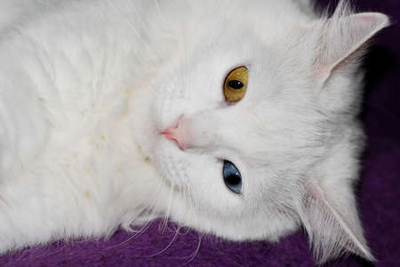 White fluffy Turkish Ankara (Angora) cat with different eye colors.