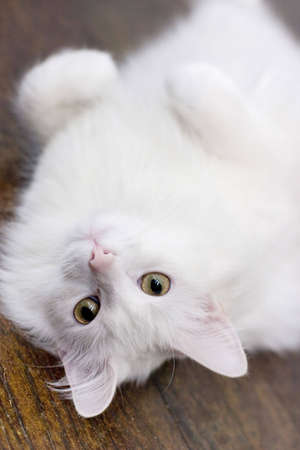 White cat laying on the floor