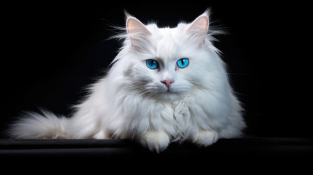 Portrait of a beautiful long-haired white cat on a black background