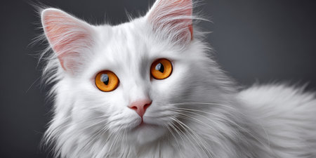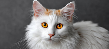 Close-up Portrait of a Charming Turkish Angora Cat with Beautiful Fur on a Soft Grey Background