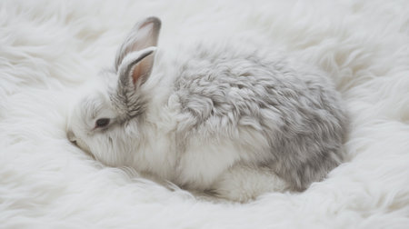 A mesmerizing photograph featuring a charming bunny whose soft, velvety fur is the main focus of the image. The bunny's fur glistens in the gentle sunlight, highlighting its delicate textures