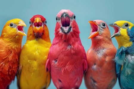Close up small multicolored birds