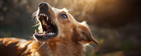 Fierce Barking Dog Under Warm Sunlight Outdoors
