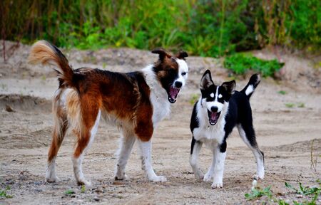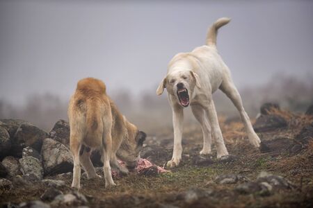 Dog fight. animal fighting. Pet bite. Fight of beasts. Aggression in nature.