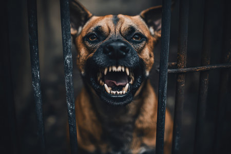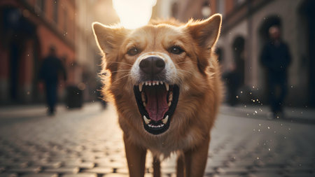 intensity of an angry dog in action, perfect for illustrating aggressive behavior and solutions.