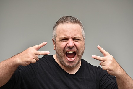 Angry man expressing intense frustration