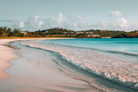 Serene Turquoise Ocean Waves Gently Lapping Against a Pristine Sandy Beach Under Bright Sunlight