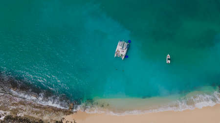Top view of Saona beach at morning, crystal clear sea and beautiful sandy beach,Caribbean sea.Saona island.Dominican Republic.
