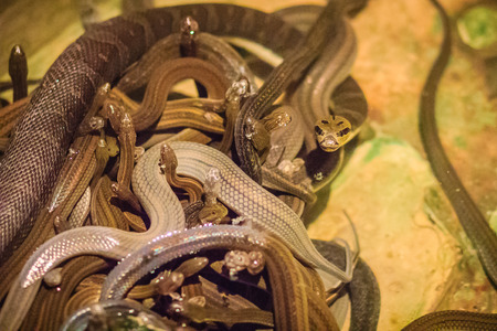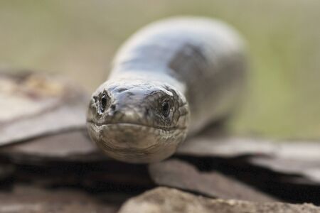 Slow Worm or Blind Worm, Anguis fragilis. Slow Worm lizards are often mistaken for snakes. His food is generaly pest insects. Shallow focus to eye. Czech nature and wildlife