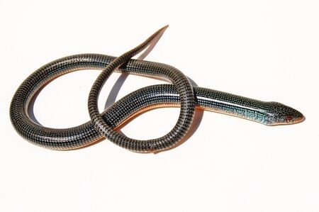 Young slowworm (Anguis fragilis) isolated on white background