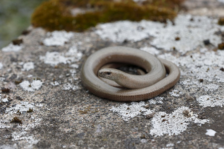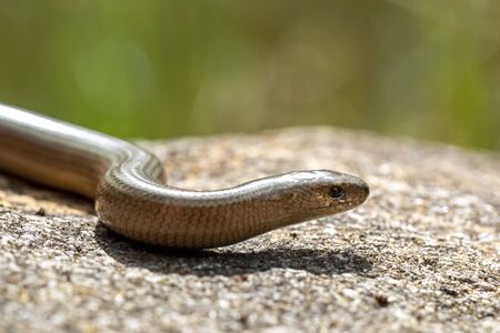 blindworm on a rock in nature, note shallow depth of field
