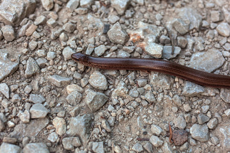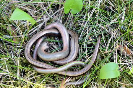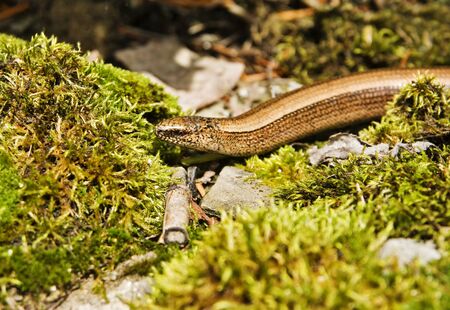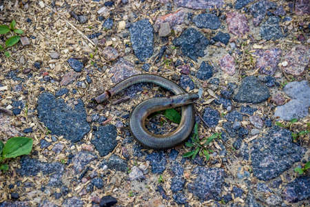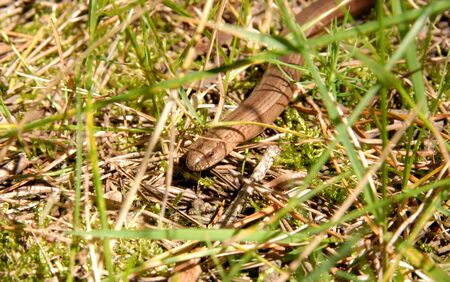 Legless copperhead lizard. Brittle slowworm in the natural environment.