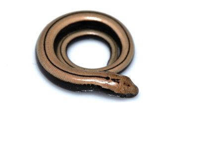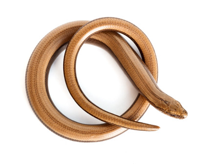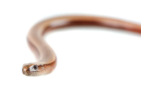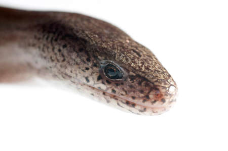 Close up of a baby slow worm snake isolated on a white background