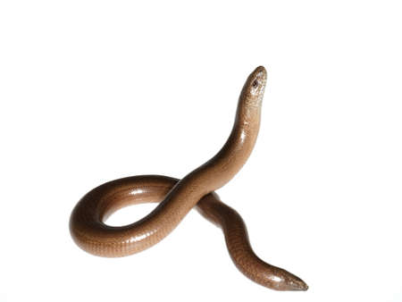 Slow worm or legless lizard on white background. Anguis fragilis