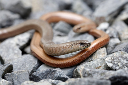 Anguis fragilis is a European legless lizard, lives secretly