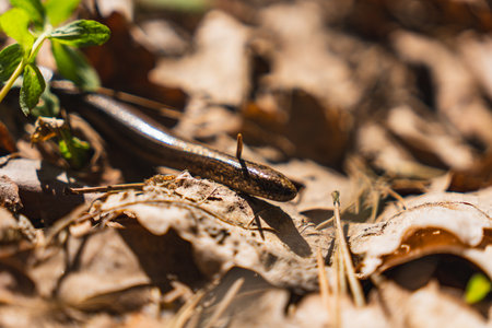 The common slow-worm, Anguis fragilis, blindworm crossing snake wild nature animal