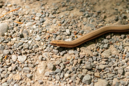 A close-up shot of a slow worm moving on the small stones during the daytime