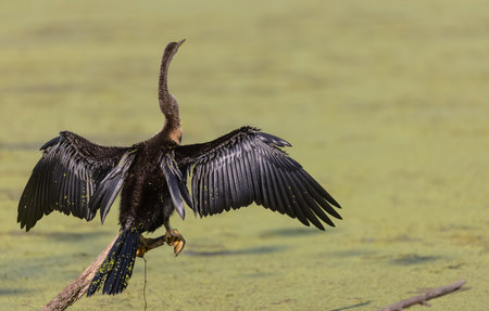 Female American Anhinga Anhinga anhinga Stretching its Wings to Dry -