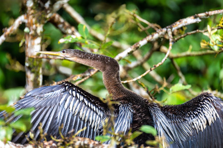 Anhinga drying after fishing in Tortuguero National Park in Costa Rica