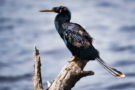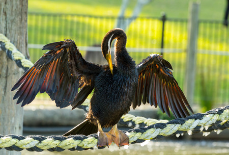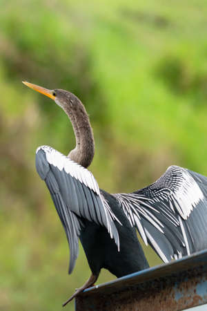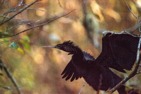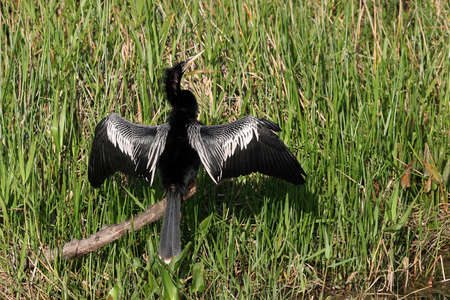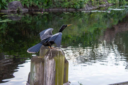 Anhinga (snake bird, water turkey, darter) sunning to dry off after diving into the water trying to catch fish
