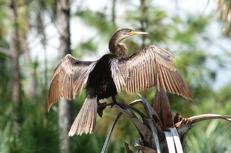 The Anhinga or Snakebird needs to dry its plumage after swim