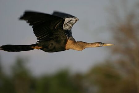 Anhinga (Anhinga anhinga) in flight, Everglades National Park, Anhinga Trail, Florida