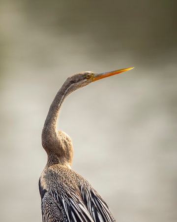 Oriental darter or Indian darter or Anhinga melanogaster at keoladeo national park bharatpur bird sanctuary forest rajasthan india asia bird fine art close up or portrait in winter season safari