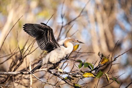 Juvenile Anhinga bird called Anhinga anhinga and snakebird near the nest in the Corkscrew Swamp Sanctuary in Naples, Florida