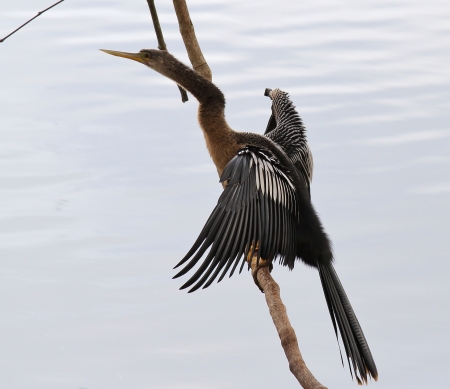 This anhinga, also known as a snakebird, is drying its wings in the sun after a swim