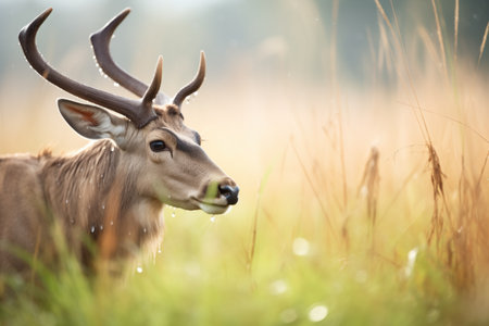 canadian caribou penguin photo with bokeh-filled background. overcast weather enhances lighting. aim for high resolution (32k) to capture intricate details of majestic creatures. ai generated