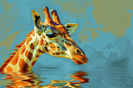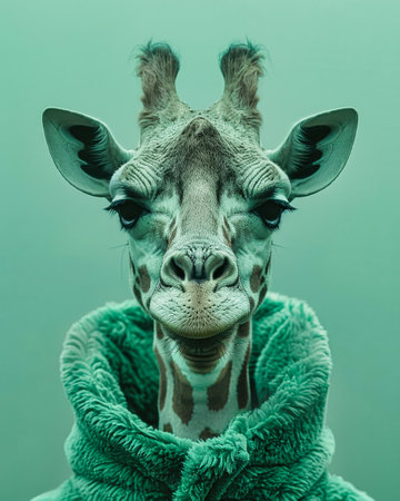 Surrealist giraffe in colorful glasses, whimsical background, blending wildlife with creativity.