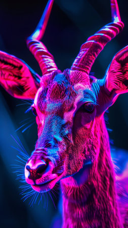 Leopard in neon red and blue lighting, dramatic and vibrant closeup