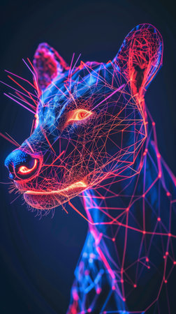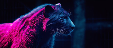 Glowing panther, neon blue and pink, dark background, digital art