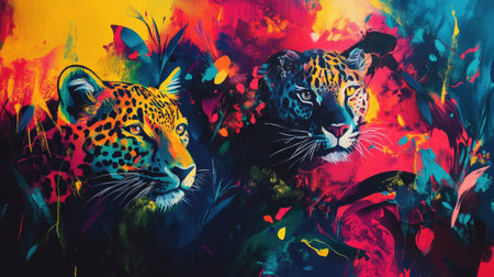 Discover vibrant abstract representations of wildlife featuring leopards amidst a colorful jungle. A perfect blend of art and nature designed for modern aesthetics.