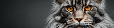 Majestic Maine Coon Cat with Striking Golden Eyes Posing Elegantly Against a Soft Gray Background