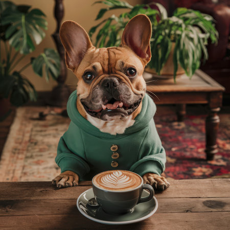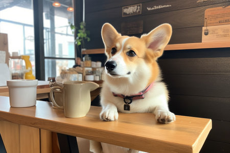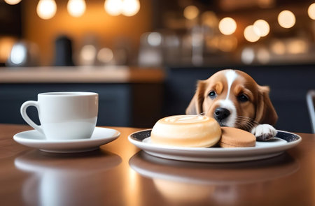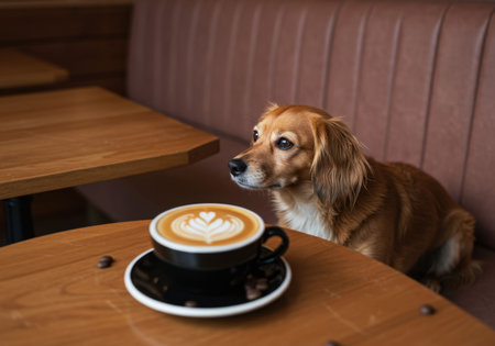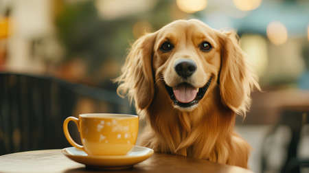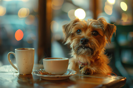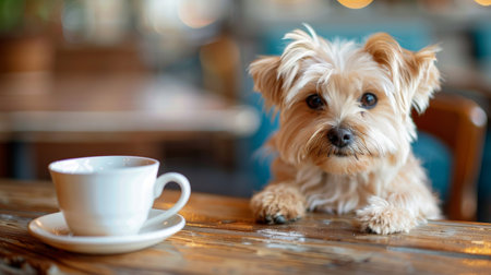 An AI generated illustration of A adorable dog enjoying coffee in the cafe