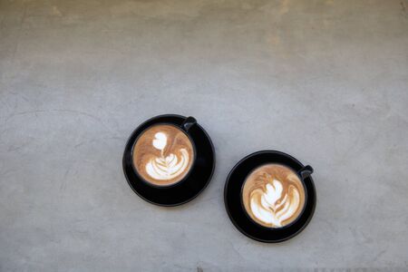 Coffee time concept. cup of coffee latte art on the wood table at coffee shop.. relaxation concept