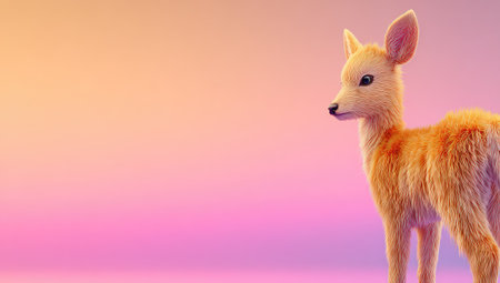 A digital illustration showcases a young deer rendered with a soft, textured appearance. The artwork features a gradient background blending warm oranges and pinks. The composition is likely intended for use in various visual projects, including promotional materials or artistic presentations. Its style could be suitable for editorial content.