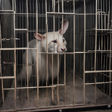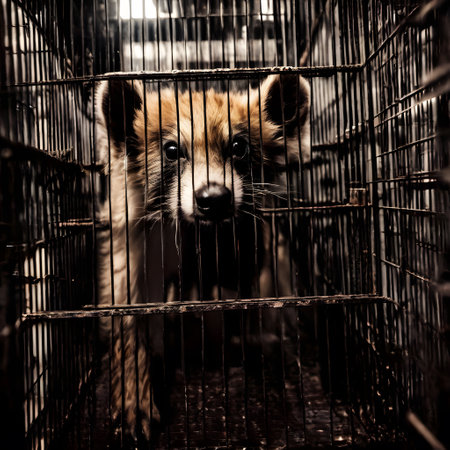 Image of a concealed animal behind a cage, hinting at themes of captivity