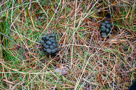 Fresh droppings of european roe deer ,capreolus capreolus, in the field