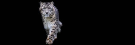 snow leopard with a black background