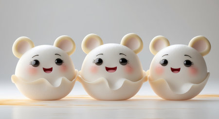 AI Generated. Three Adorable Cartoon Dumplings Smile Cheerfully