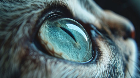 close-up view of a cats mesmerizing blue eye, capturing the intricate details and captivating depths of feline vision.
