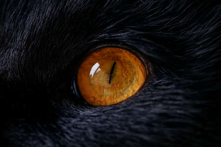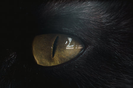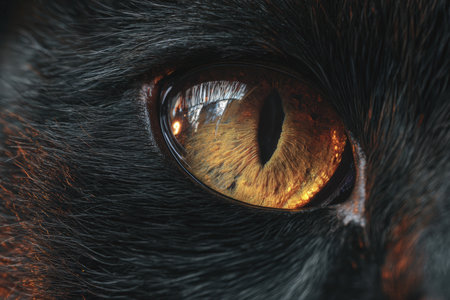 Close-up of Black Cats Eye Reflecting Candlelight in Sharp Detail